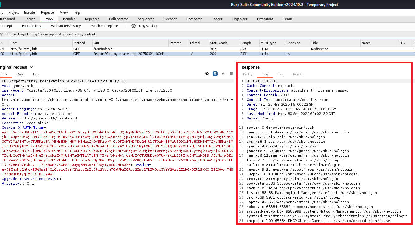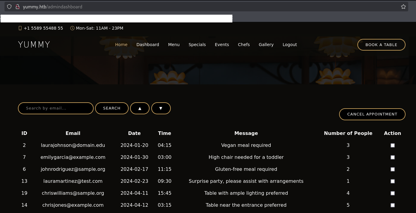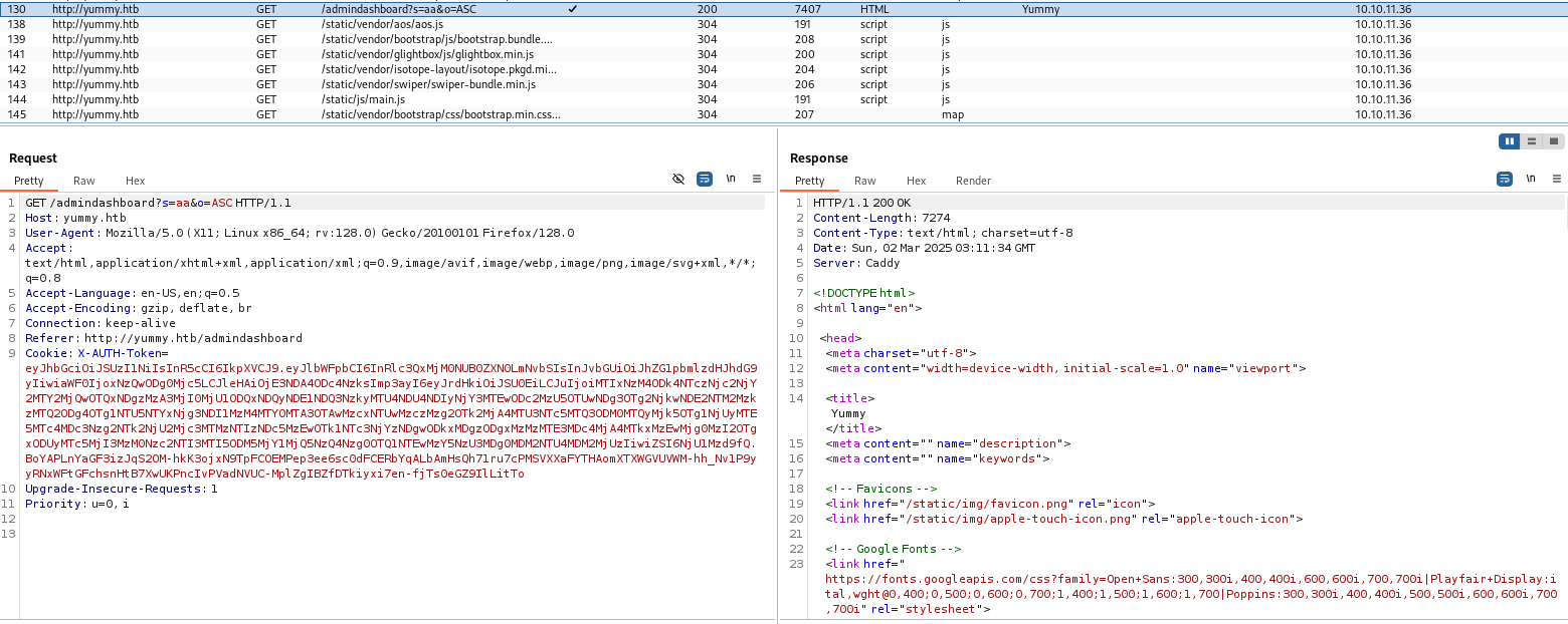 302      GET        5l       22w      199c http://yummy.htb/logout => http://yummy.htb/login
