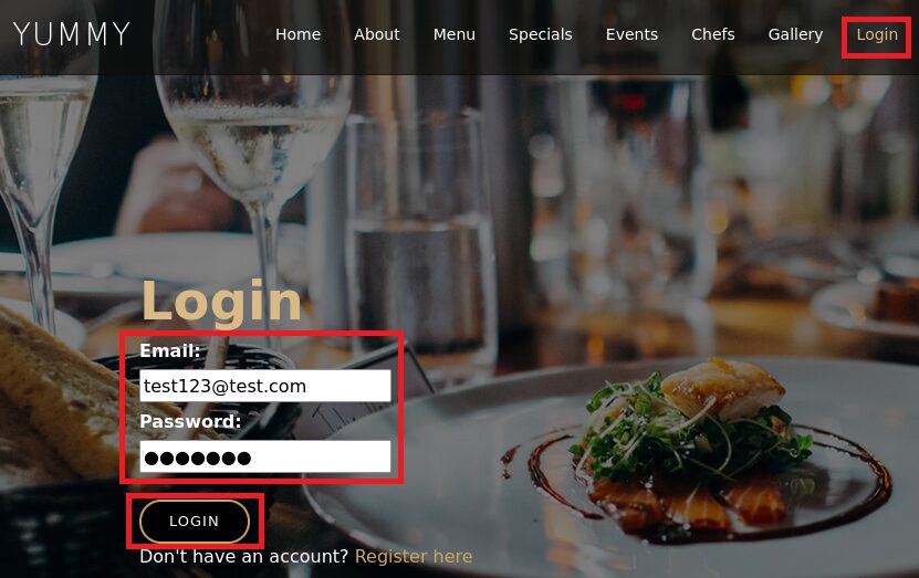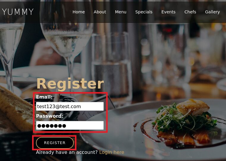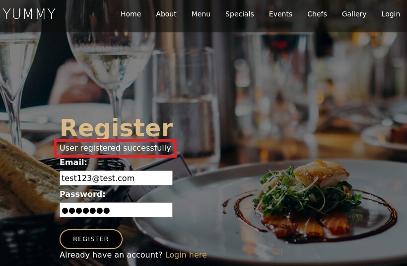 200      GET      175l      503w     7816c http://yummy.htb/register