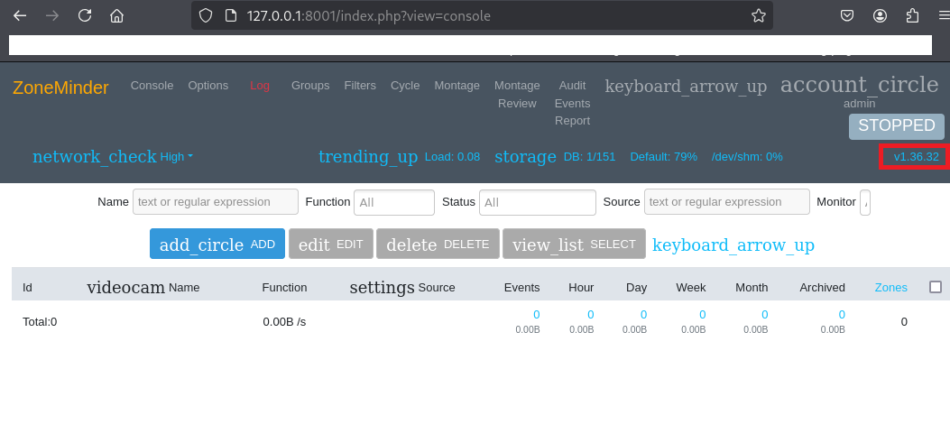 問題(英語訳):What version of ZoneMinder is running on Surveillance?