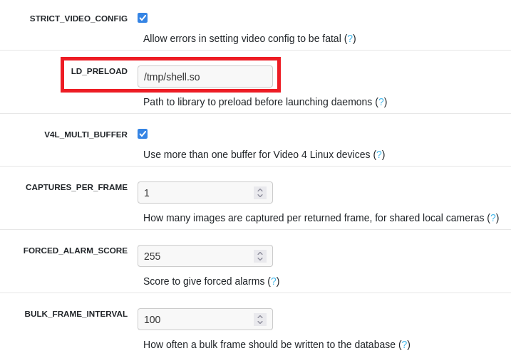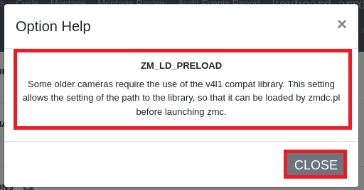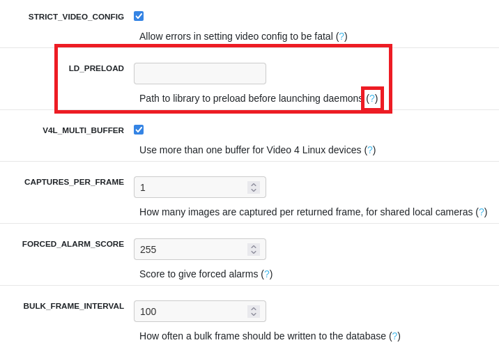 問題(英語訳):What is the name of the configuration in ZoneMinder that sets the path to a library to preload before launching daemons?