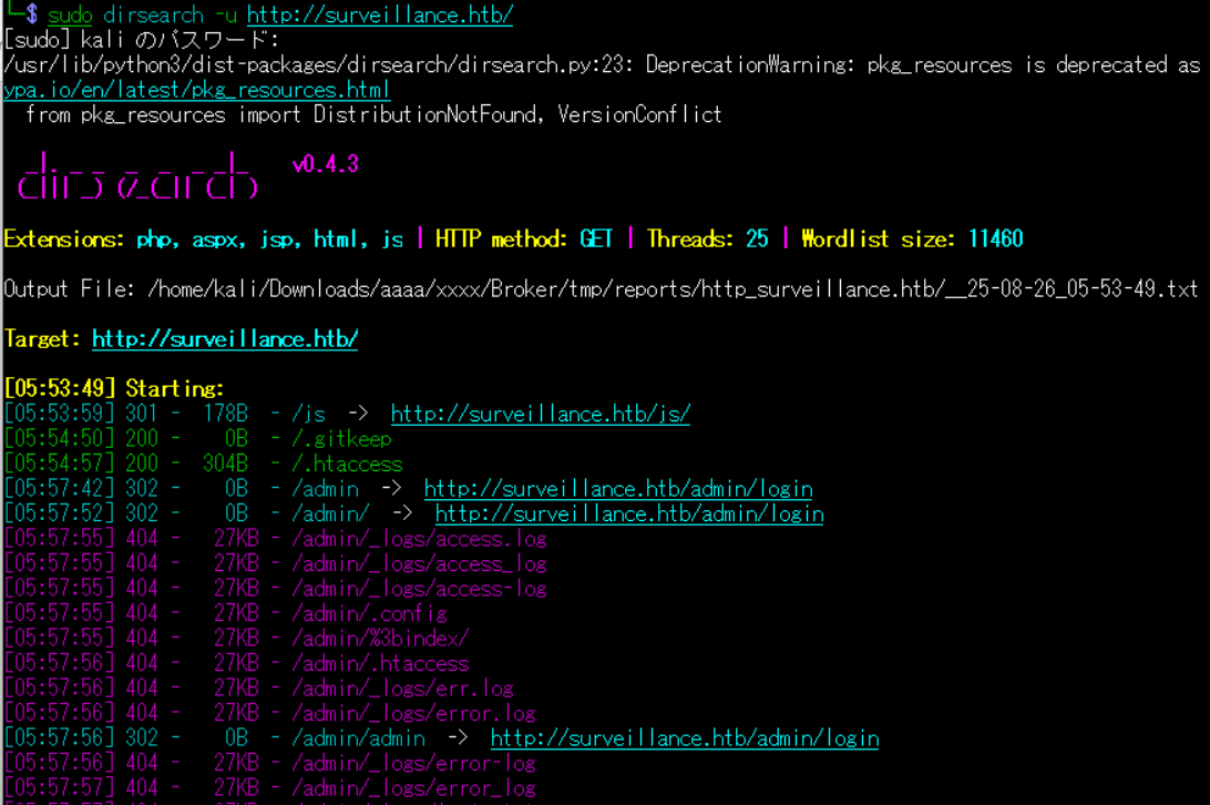 [05:57:42] 302 - 0B - /admin -> http://surveillance.htb/admin/login
