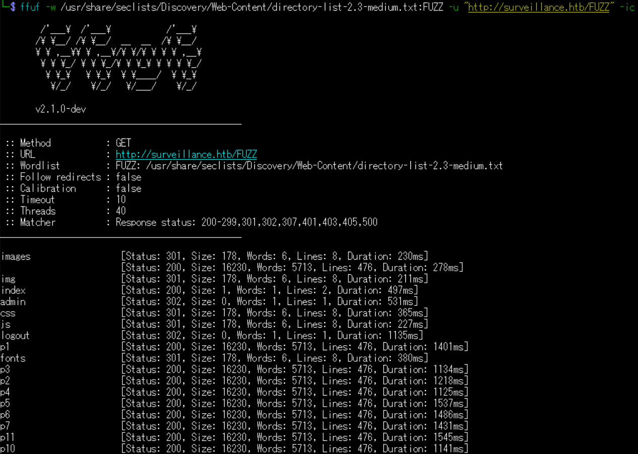 301 GET 7l 12w 178c http://surveillance.htb/css => http://surveillance.htb/css/