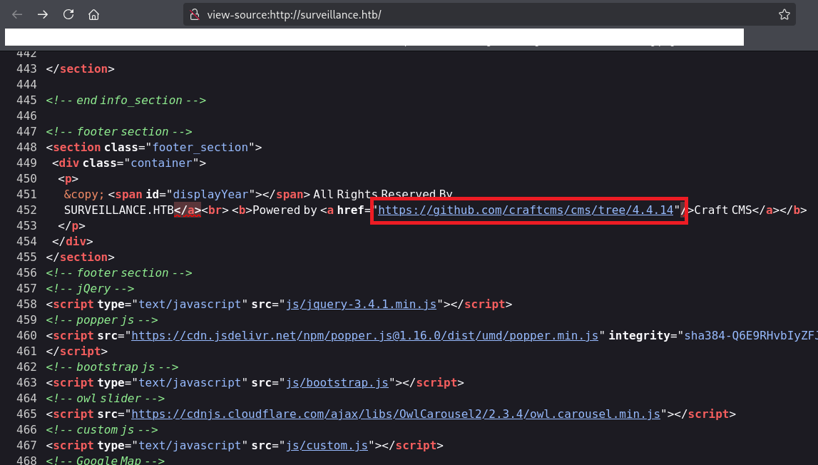 301 GET 7l 12w 178c http://surveillance.htb/js => http://surveillance.htb/js/