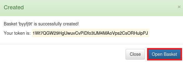 (3) URLにアクセスするとリクエストデータが表示される旨のメッセージがあるため、表示されたURL(例:http://10.10.11.224:55555/byyfj9t)にアクセスする。
