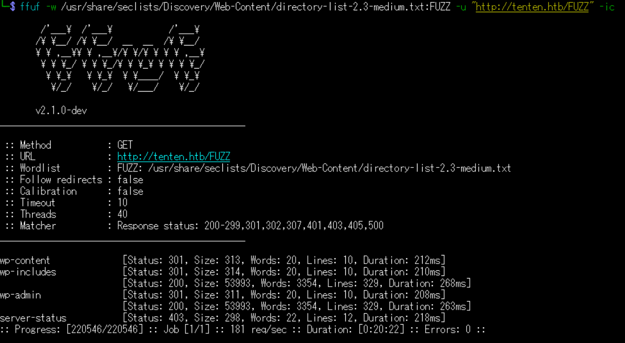$ ffuf -w /usr/share/seclists/Discovery/Web-Content/directory-list-2.3-medium.txt:FUZZ -u "http://tenten.htb/FUZZ" -ic