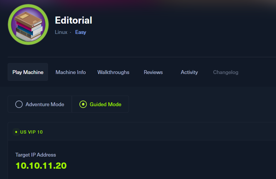$ echo '10.10.11.20 editorial.htb' | sudo tee -a /etc/hosts