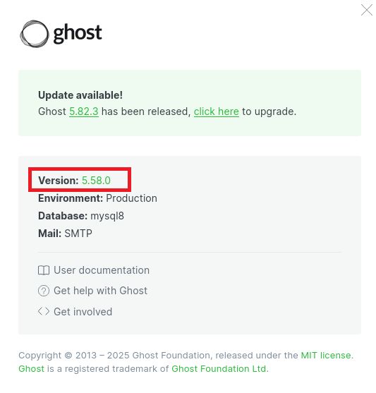 問題(英語訳):What version of Ghost running on LinkVortex?