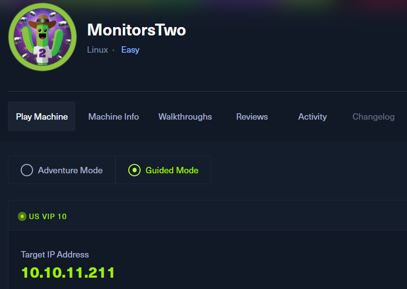 Hack The BoxのLinuxサーバの難易度Easyのマシンである「MonitorsTwo」に対する攻撃手法を記載します。