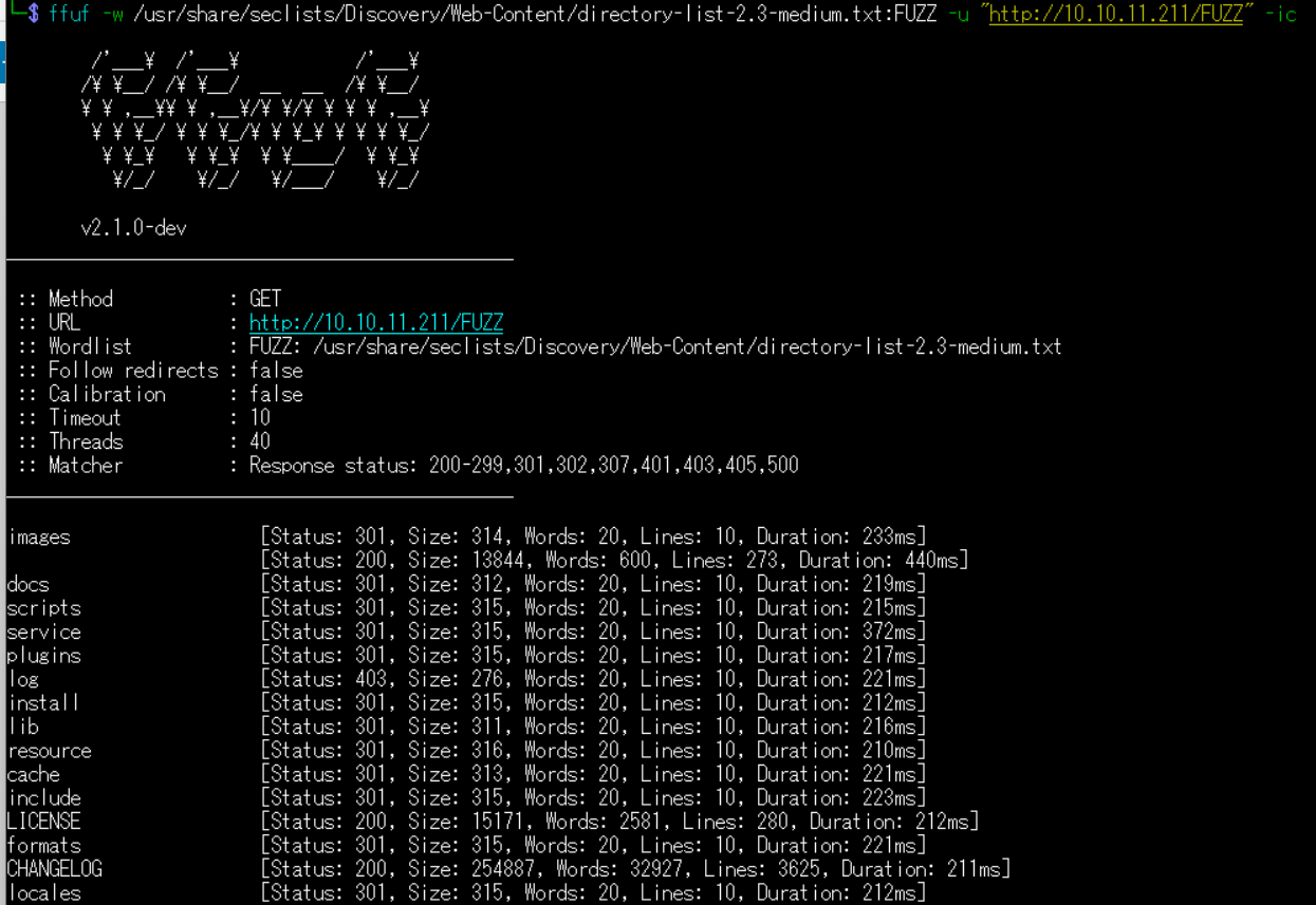 $ ffuf -w /usr/share/seclists/Discovery/Web-Content/directory-list-2.3-medium.txt:FUZZ -u "http://10.10.11.211/FUZZ" -ic