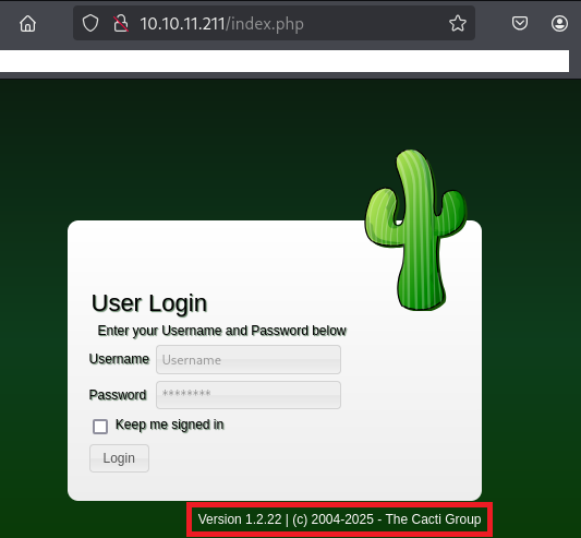 問題(日本語訳):Web サーバーで実行されている Cacti のバージョンは何ですか?