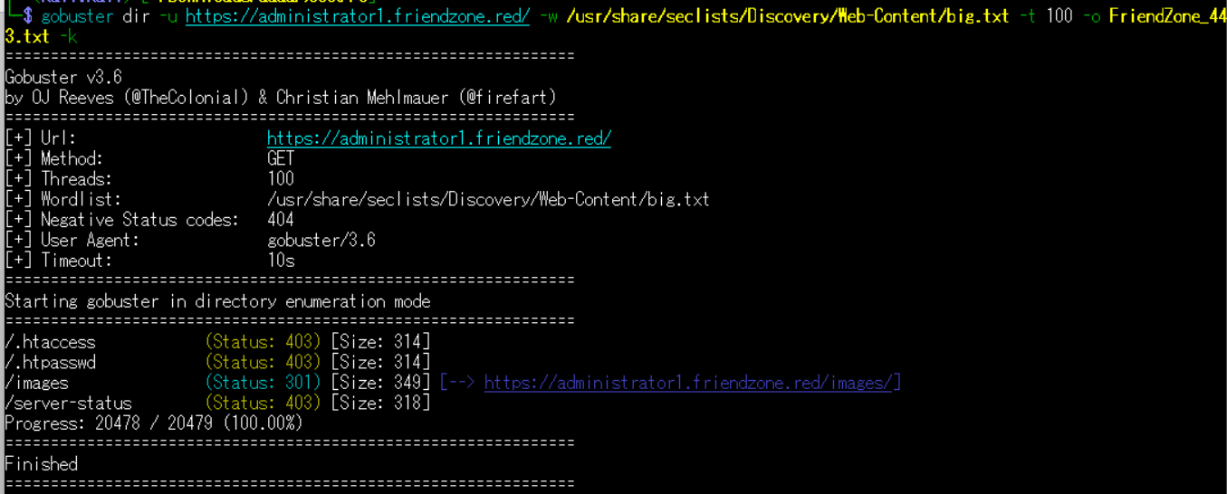 問題(日本語訳):このサーバーには、friendzone.redドメインのサブドメインが複数あります。「FriendZoneのログインフォーム」というタイトルのログインフォームを返すサブドメインの名前は何ですか?