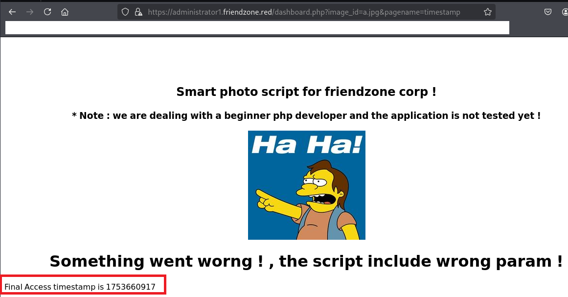 問題(英語訳):The dashboard.php page seems to be including another page that provides a timestamp. That page can also be visited directly. What is the relative path on the webserver to that page?