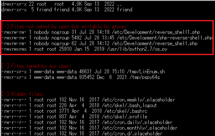 [+] Trying to send email to admin1@friendzone.com特権昇格のための調査(LinEnum.sh)
