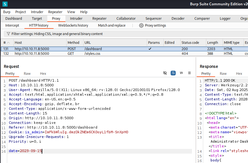 Cookie: is_admin=InVzZXIi.uAlmXlTvm8vyihjNaPDWnvB_Zfs