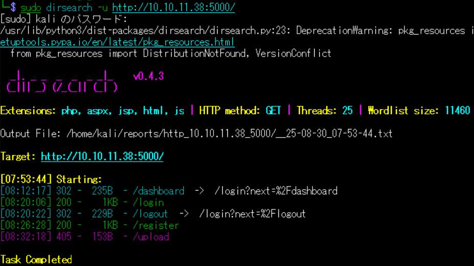 $ sudo dirsearch -u http://10.10.11.38:5000/