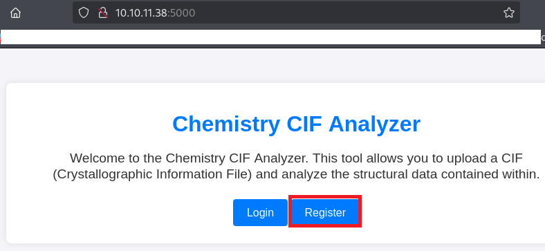 (1) ブラウザを用いて「http://10.10.11.38:5000/」にアクセスして、「Register」をクリックする。