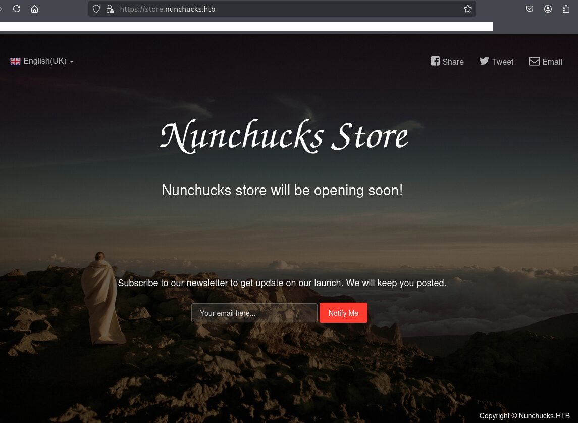 | Subject Alternative Name: DNS:localhost, DNS:nunchucks.htb