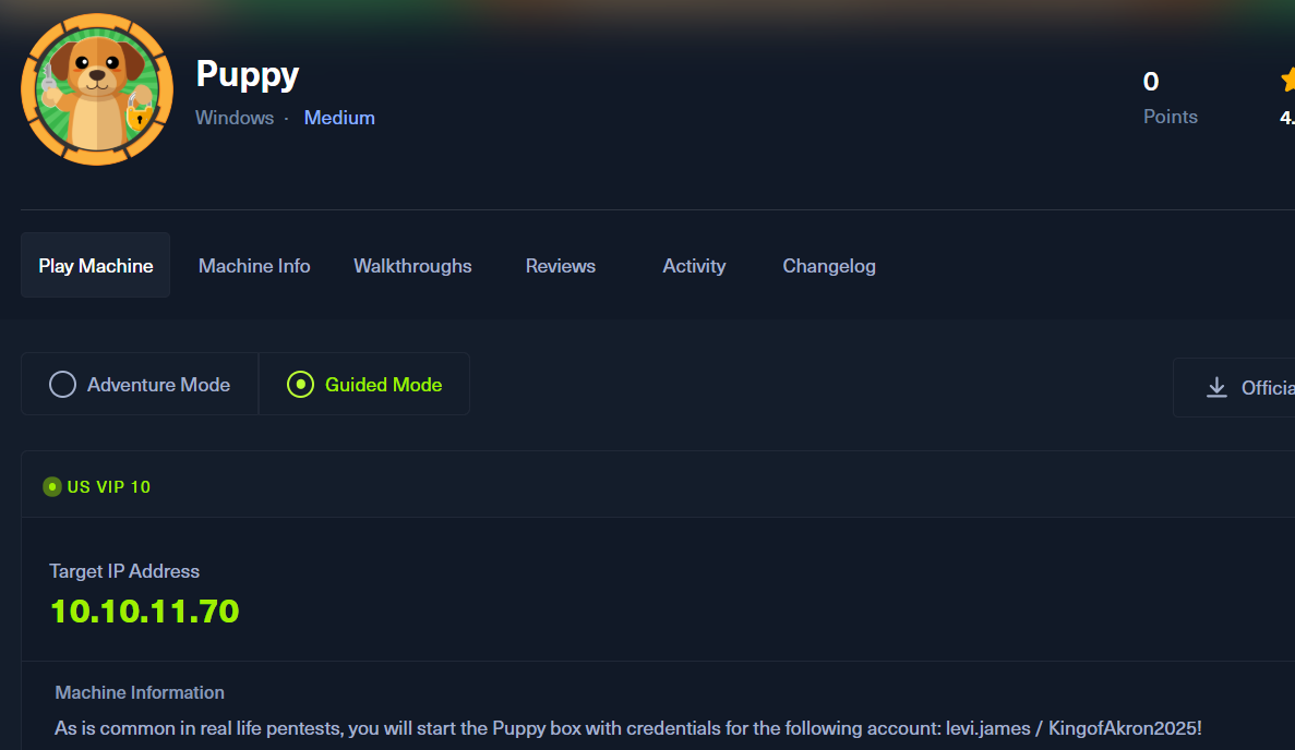 Hack The BoxのWindowsサーバの難易度Mediumのマシンである「Puppy」に対する攻撃手法を記載します。