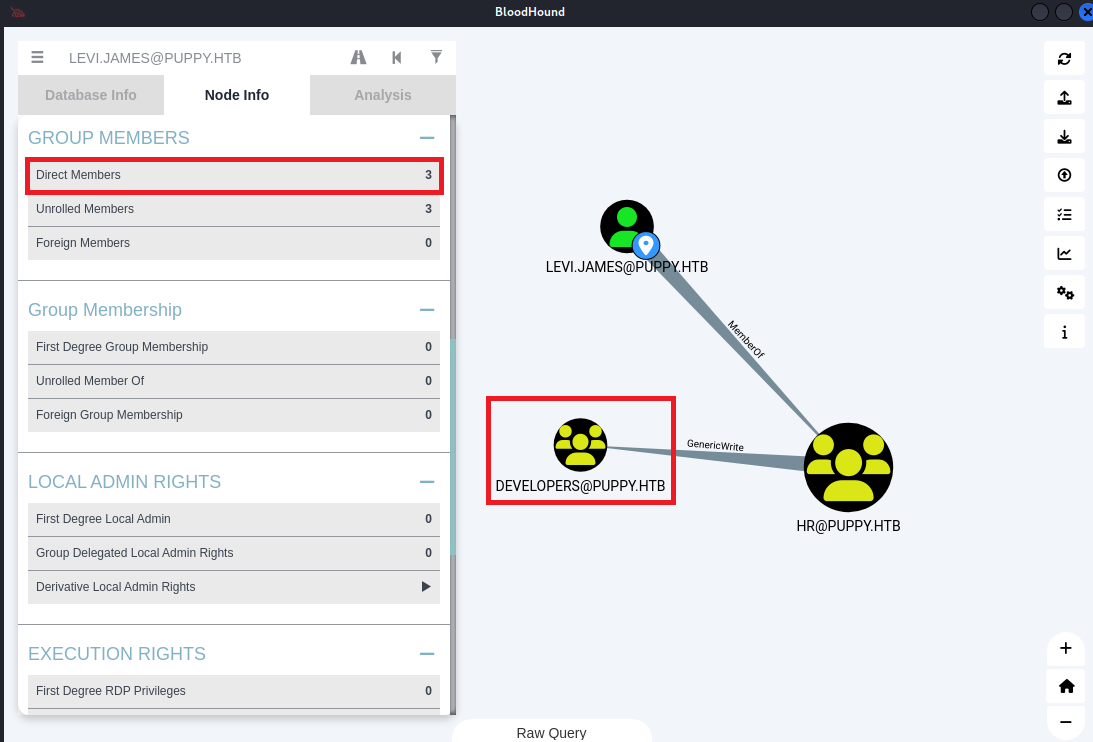 問題(英語訳):In Bloodhound's terminology, which interesting permission does the HR group hold over the Developers group?