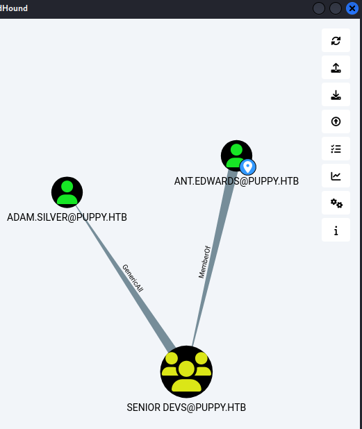 問題(日本語訳):Bloodhound の用語では、ant.edwards は adam.silver のアカウントに対してどのような権限を持っているのでしょうか?