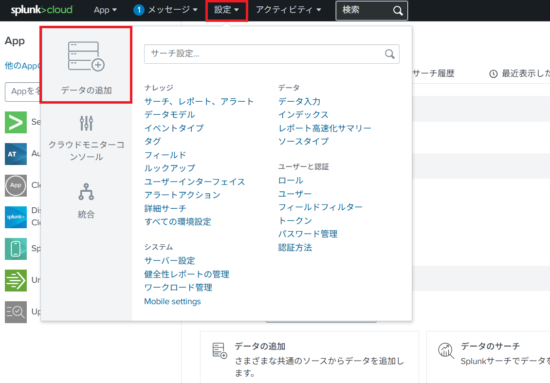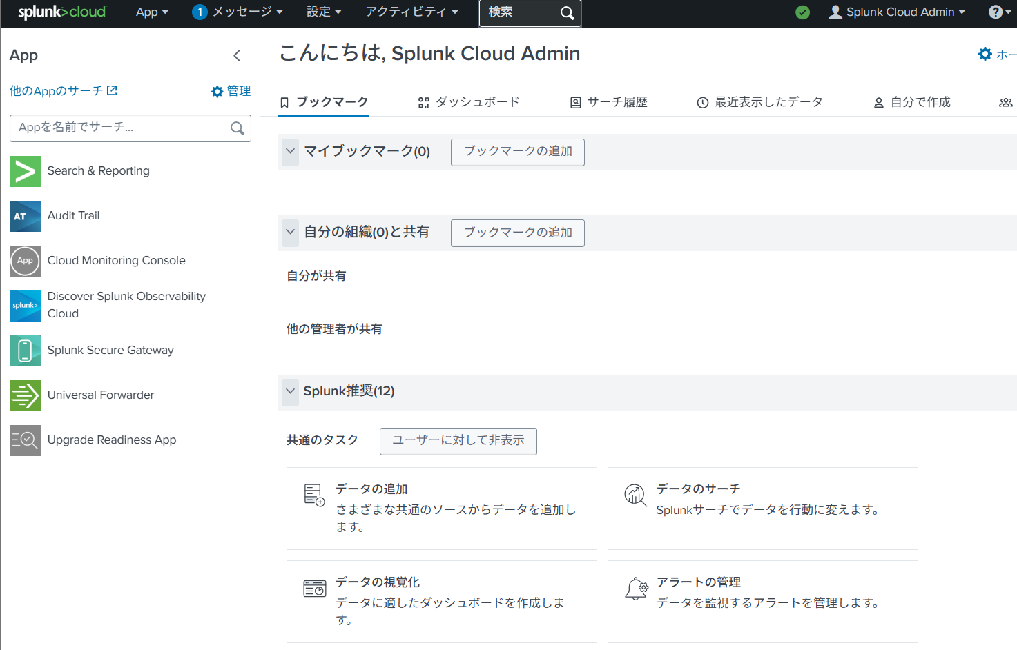 Splunk Cloudとは、ログやデータを集めて、検索・可視化・分析できるSplunkをクラウド上で使えるサービスです。