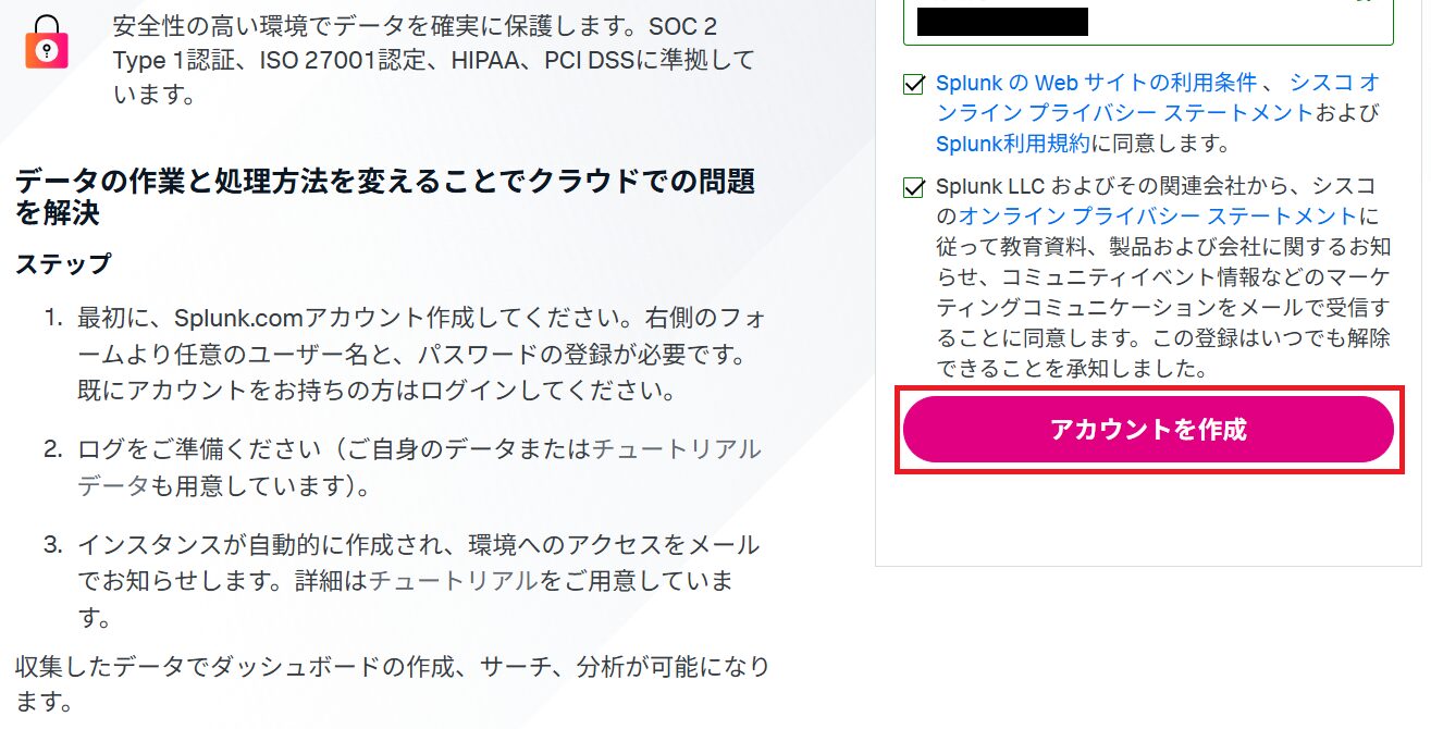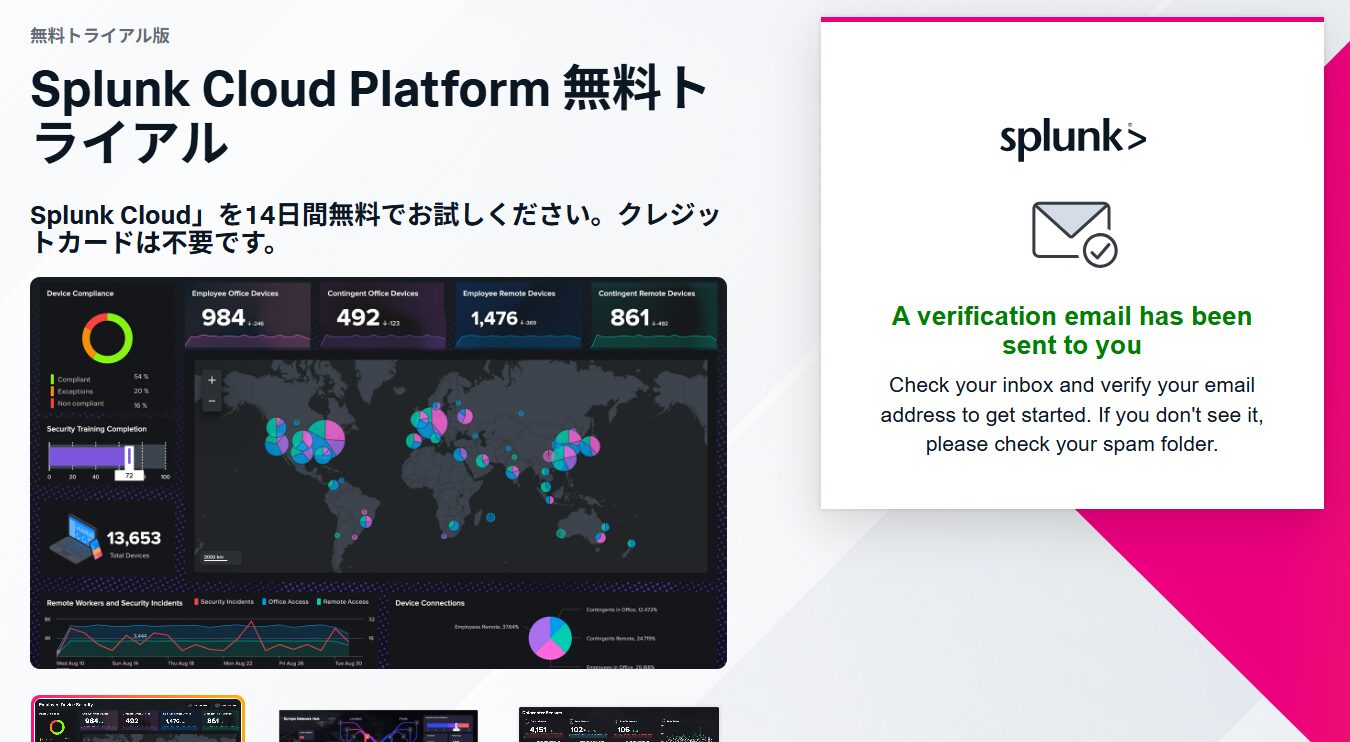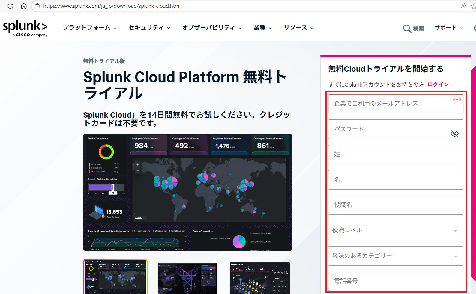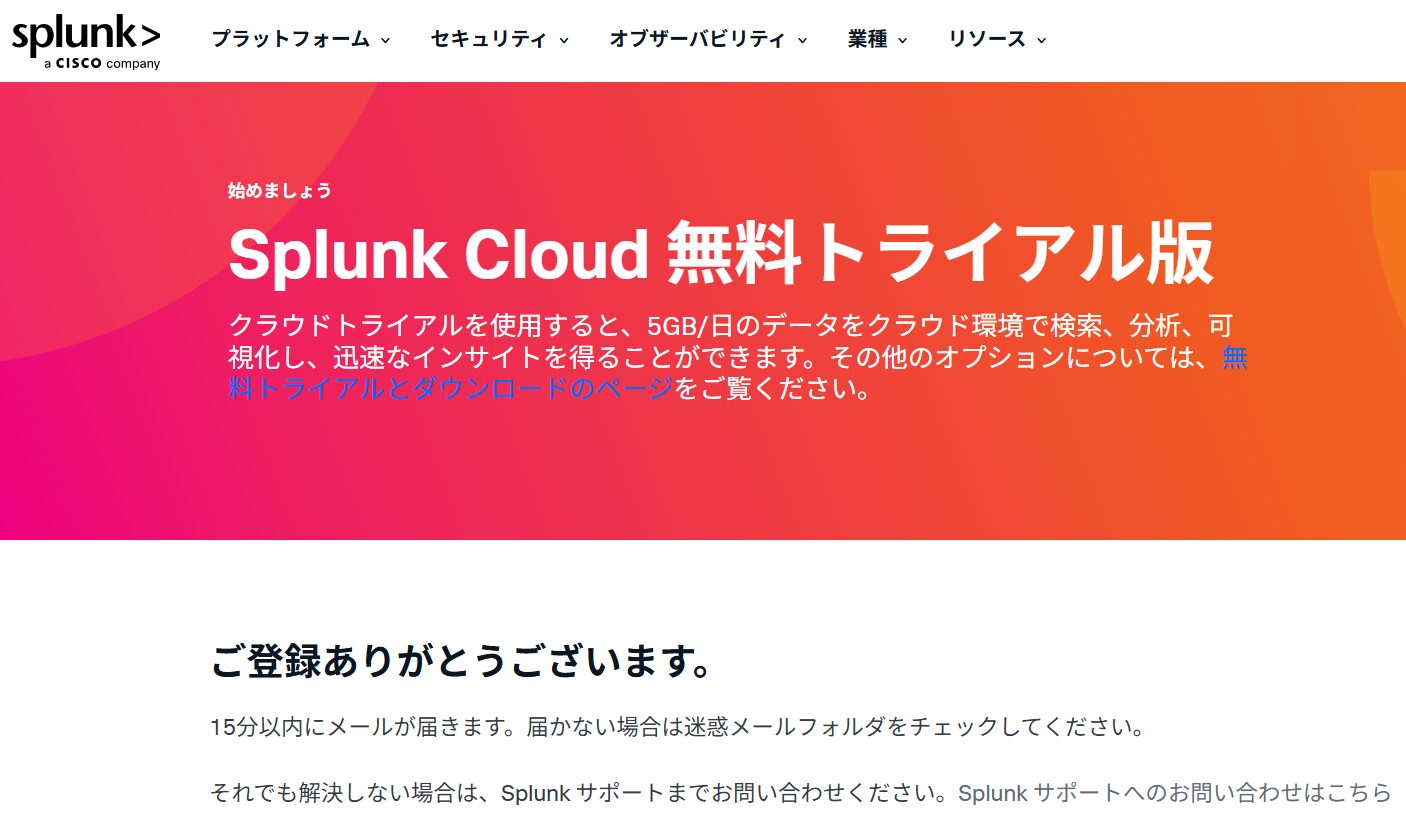 本記事では、Splunk Cloudの操作方法を学習するために無償のトライアル版を申請して、アカウントを取得します。