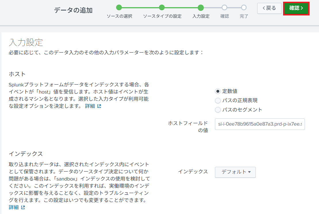 (13) 必要に応じて入力パラメータを設定し、「確認」をクリックする。