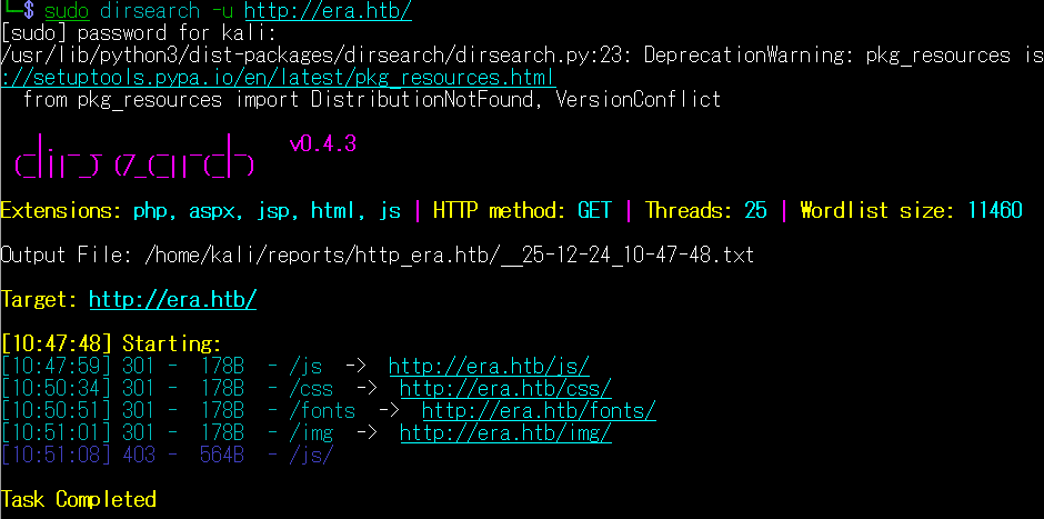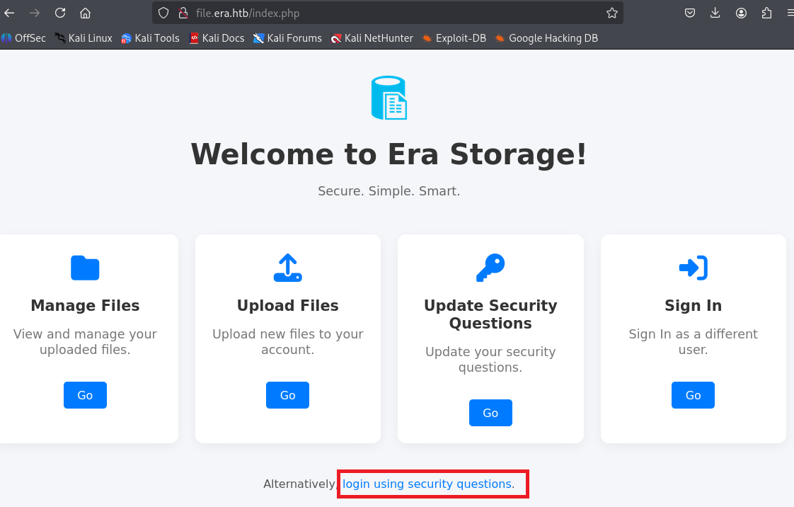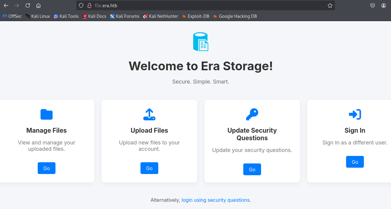 Hack The BoxのLinuxサーバの難易度Mediumのマシンである「Era」に対する攻撃手法を記載します。