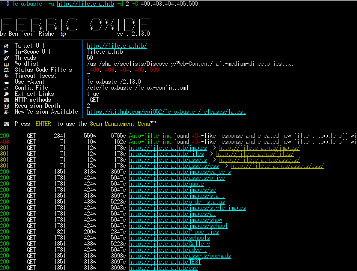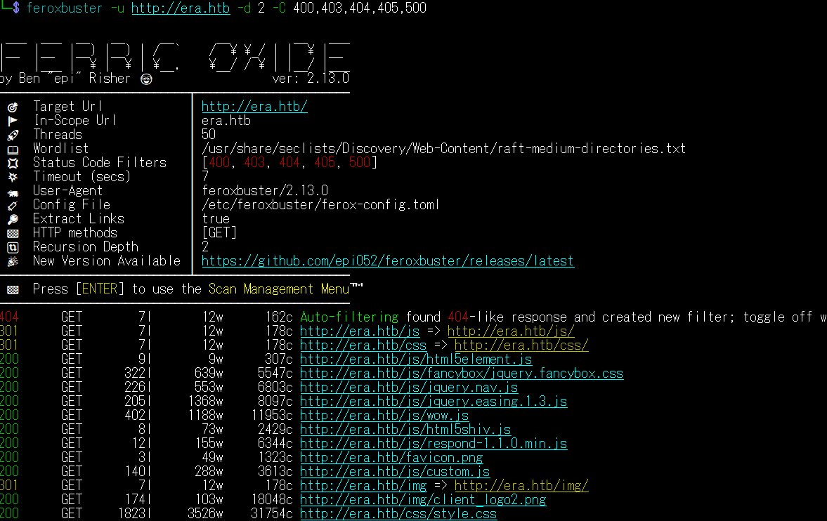 $ feroxbuster -u http://era.htb -d 2 -C 400,403,404,405,500