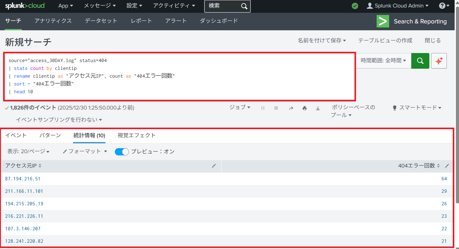 | Splunk Cloudのデータ検索(SPL基本構文) | https://security-blog-it.com/44602 |