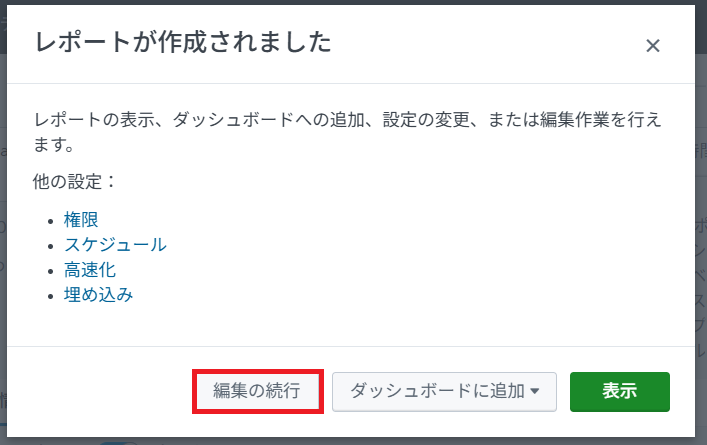 (7) 今回設定したレポートの[編集] > [権限の編集]をクリックする。