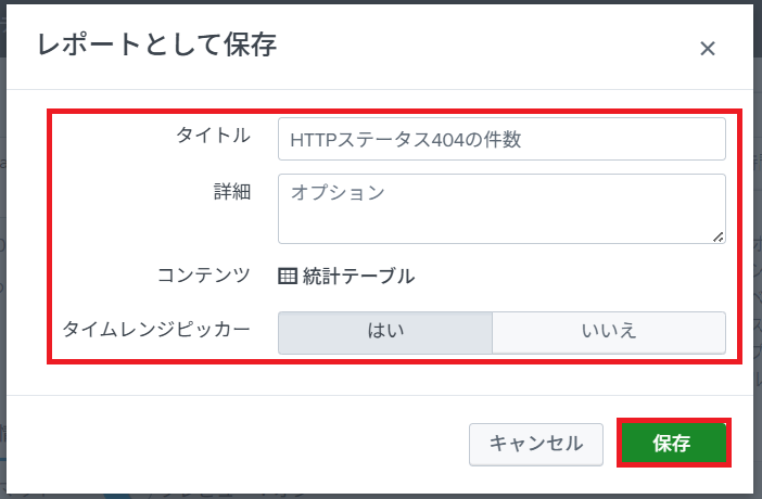 (4) タイトル、詳細、タイムレンジピッカーを設定し「保存」をクリックする。