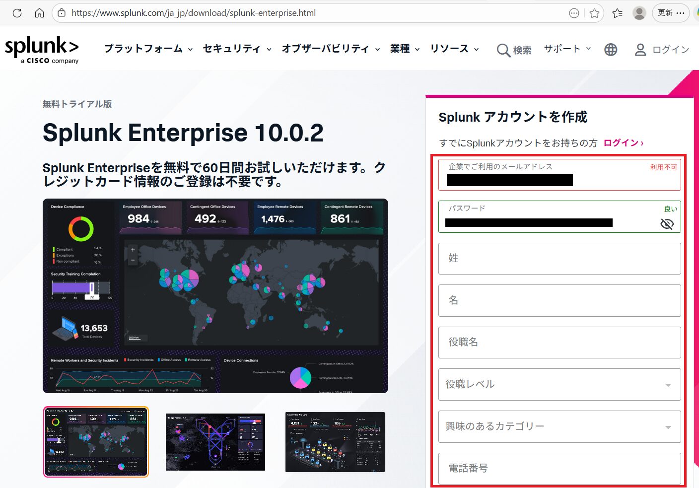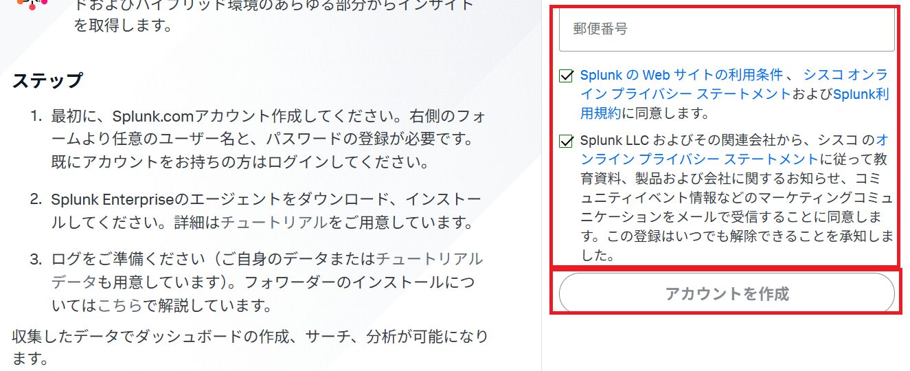 (2) ブラウザを用いて「https://www.splunk.com/ja_jp/download.html」にアクセスします。