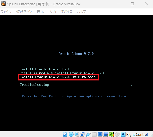 (7) 「Install Oracle Linux 9.7.0 in FIPS mode」を選択します。