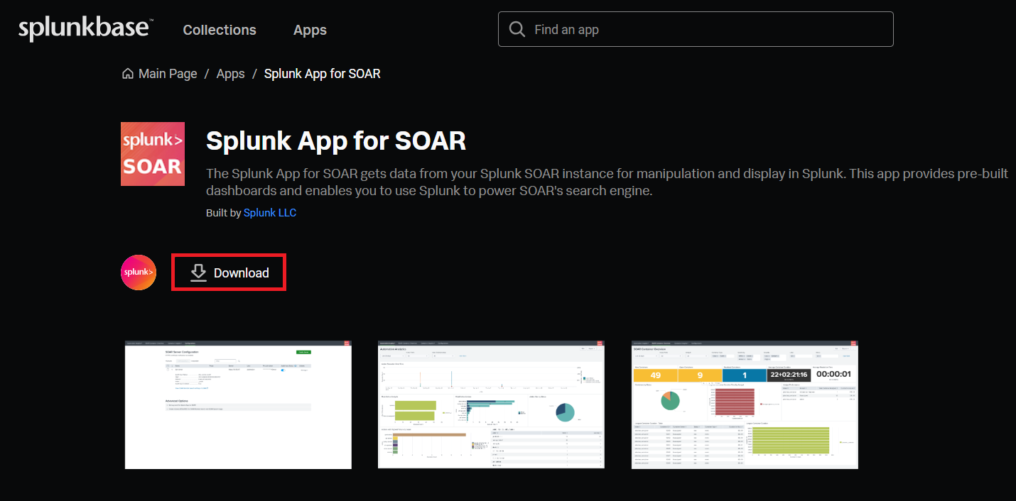 (7) 「Splunk App for SOAR」の画面にて「Download」をクリックする。