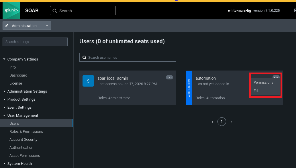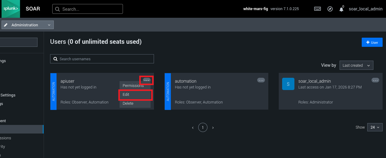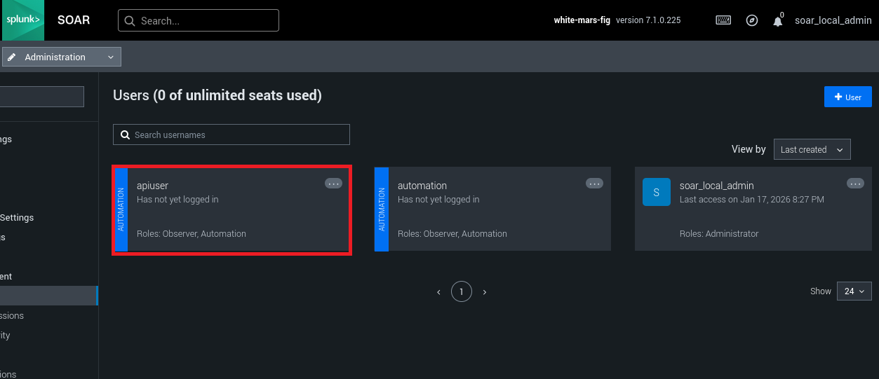Splunk SOARのユーザー設定(automationユーザーの設定変更)