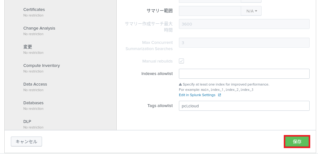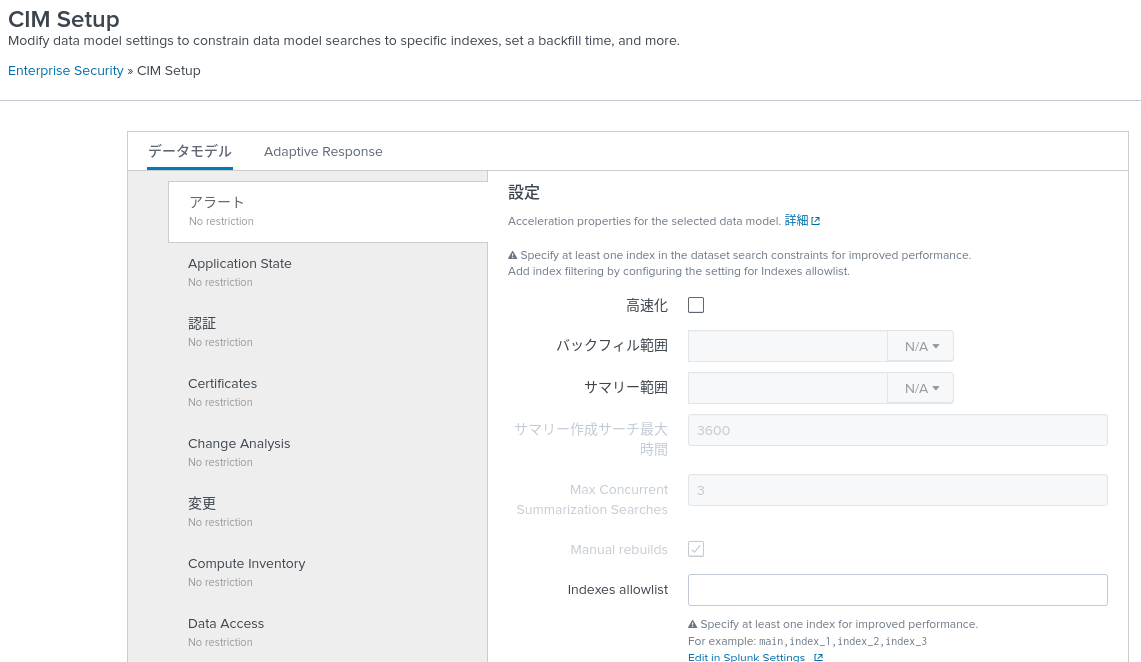 (10) 「Splunk Common Information Model (CIM)」の設定画面が表示される。