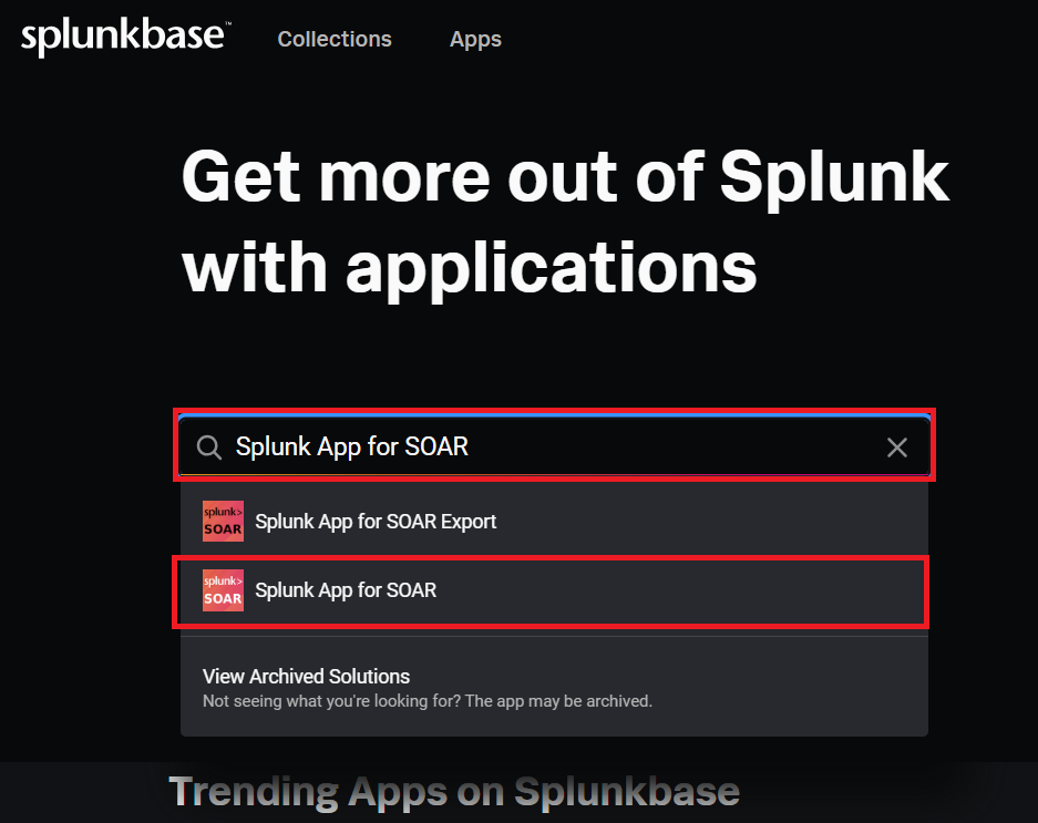 (6) ブラウザを用いて「https://splunkbase.splunk.com/」にアクセスして、「Splunk App for SOAR」を検索する。