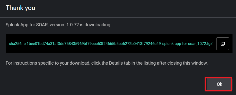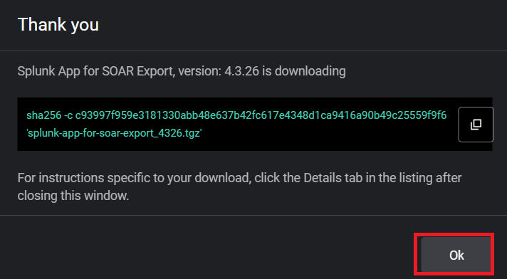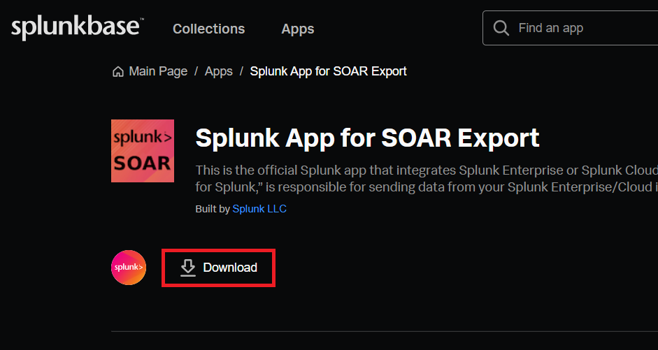 (3) 「Splunk App for SOAR Export」の画面にて「Download」をクリックする。