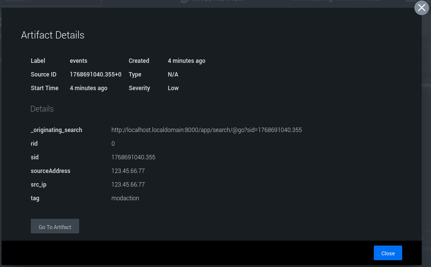 | makeresults | eval src_ip="123.45.66.77" | sendalert sendtophantom param.phantom_server="SOAR_main" param.sensitivity="amber" param.severity="low" param.label="events"
