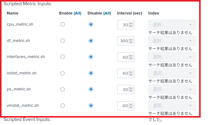(4) Scripted Metric Inputs欄の値を設定する。