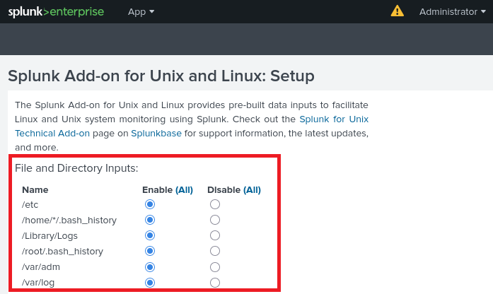 Splunk Add-on for Unix and Linuxの設定