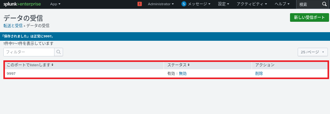 # /opt/splunkforwarder/bin/splunk enable boot-start -user splunkfwd -systemd-managed 1Splunk Enterpriseの受信設定