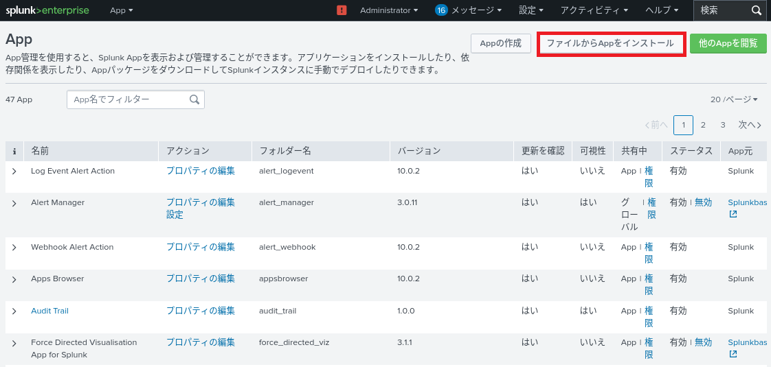 Splunk EnterpriseへAppインストール(Splunk Add-on for Microsoft Windows)