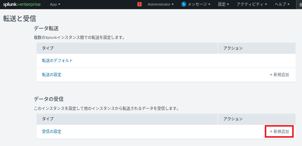 $ splunk.exe restartSplunk Enterpriseの受信設定