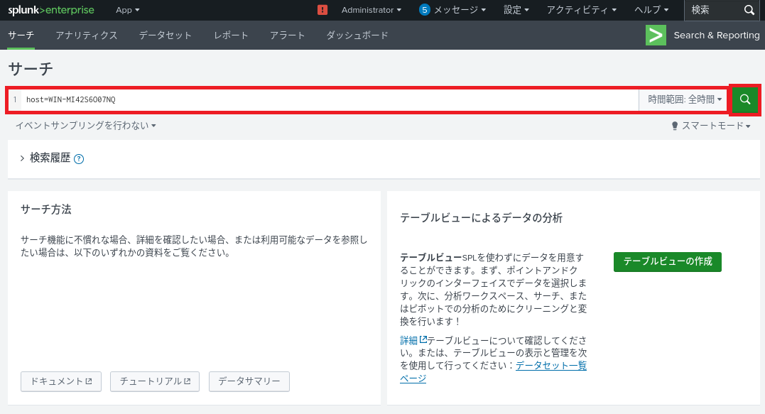 (3) Splunk Enterpriseのデータ検索に送られたデータを確認することができる。